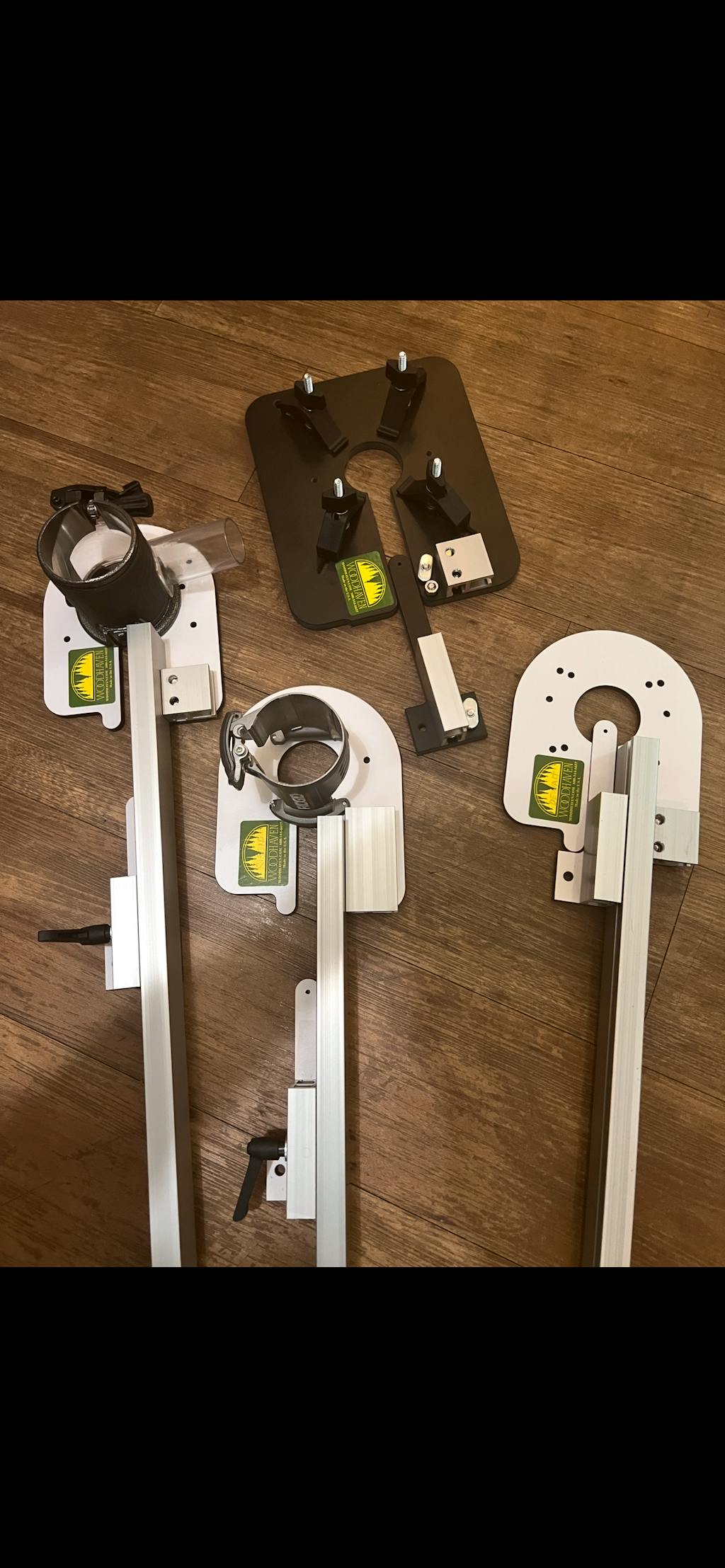 I contacted Doug the owner and with his recommendations I ordered two 4ft rails and one 2ft rail made from extruded aluminum with extension connections brackets so I could have 2ft, 4ft, 6ft, 8ft and 10ft rail for cutting circles. I also added router bases for trimmer routers, Makita, Ridgid, DeWalt and extra for medium base for plunge router.