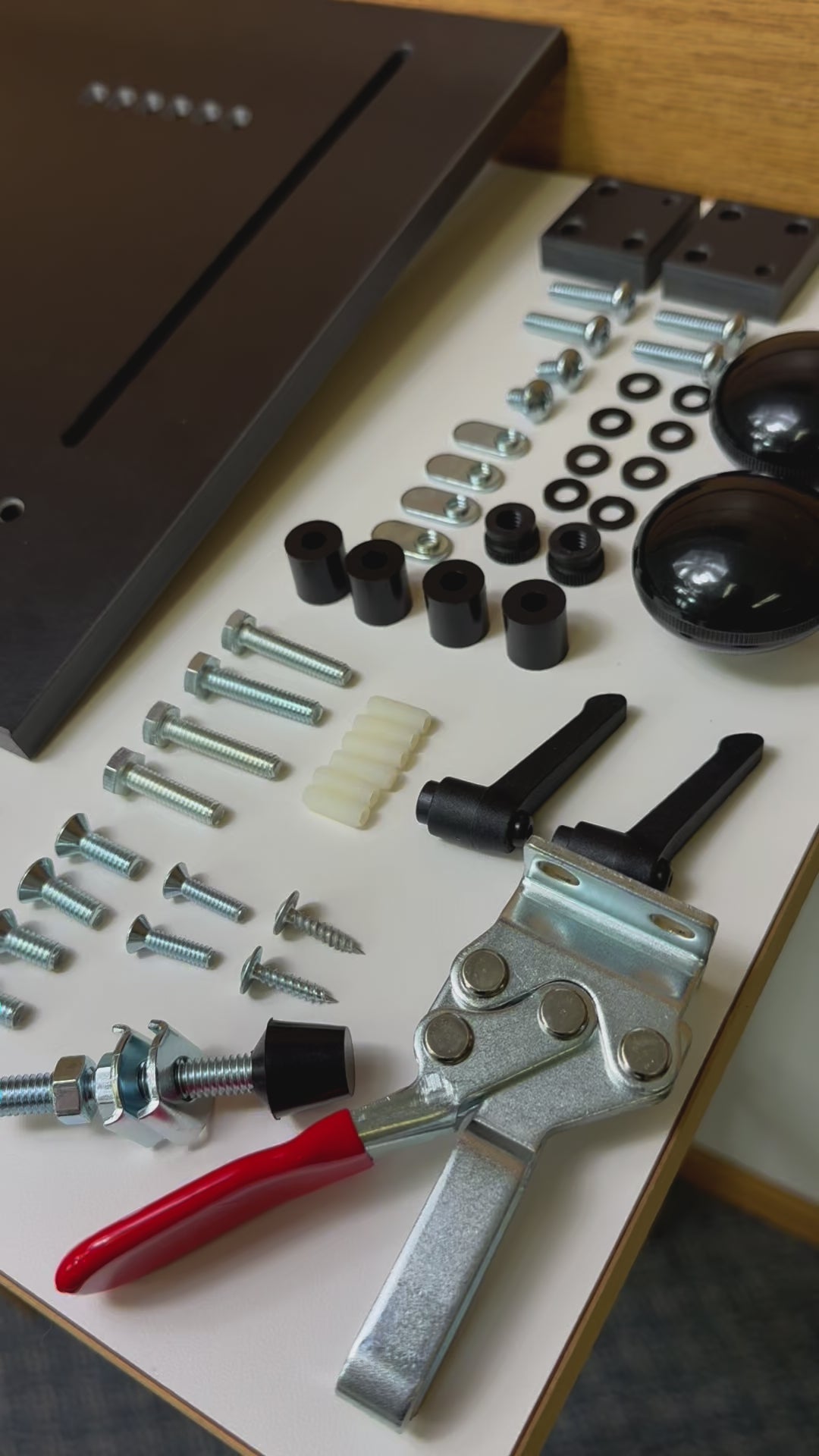 > Heavy duty 1/2" phenolic base (11-5/8") will not distort from clamp pressure. Features two 500 lb. Inboard Toggle Clamps to hold stock up to 1-3/4" thick.