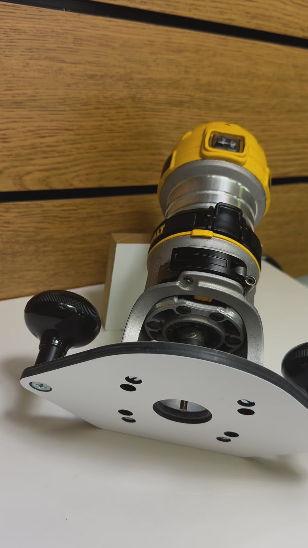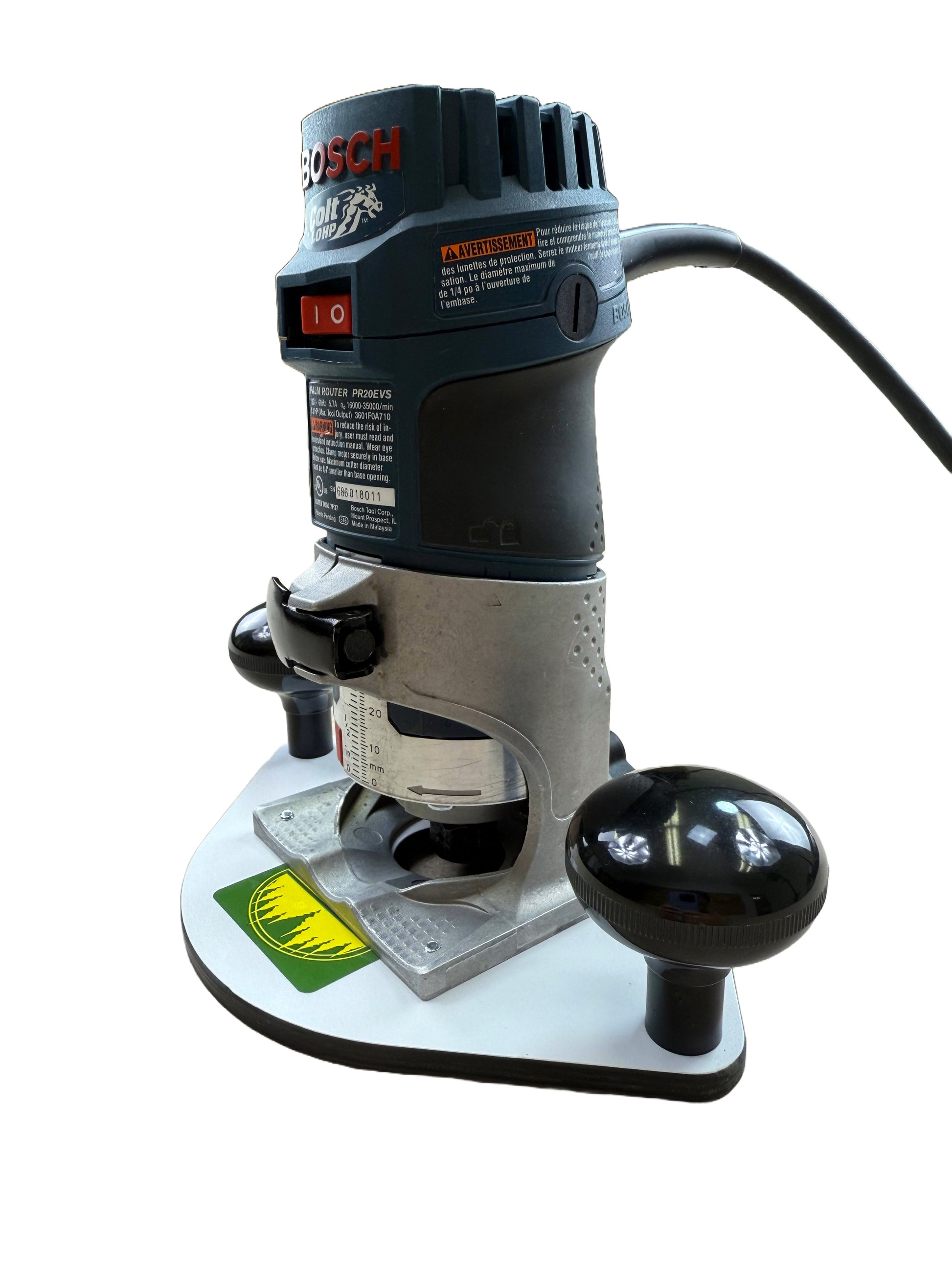 7mm (1/4") thick white phenolic base plate is 7-3/4" by 5" and includes mounting screws. Our Phenolic plate is more durable than the acrylic plates others sell. See our 8321-8381 Routing Plates if you need a larger bit opening. See our 8325-8395 Offset Plates for safer edge routing. Router not included.